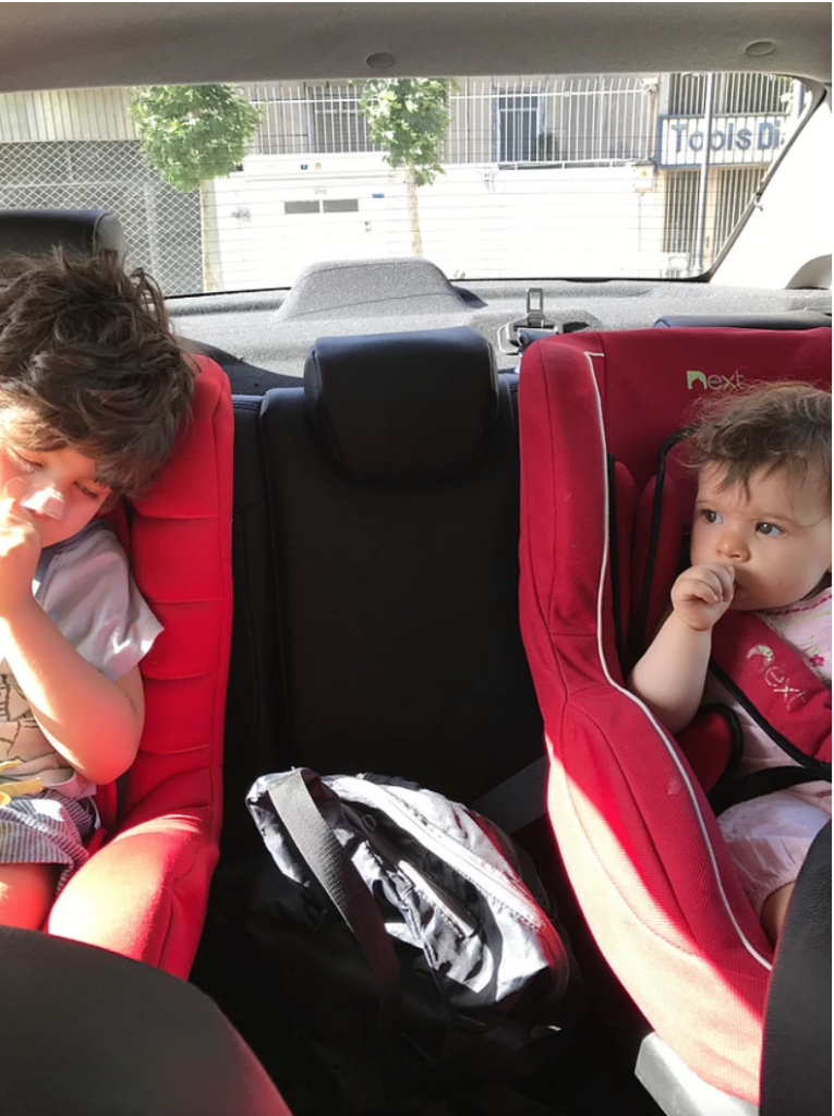 C’est au piéton de slalomer. Les voitures et les motos arrivent de toute part. On décide de se lancer. La poussette est à hauteur des pots d’échappement, c’est pas génial mais pas le choix.